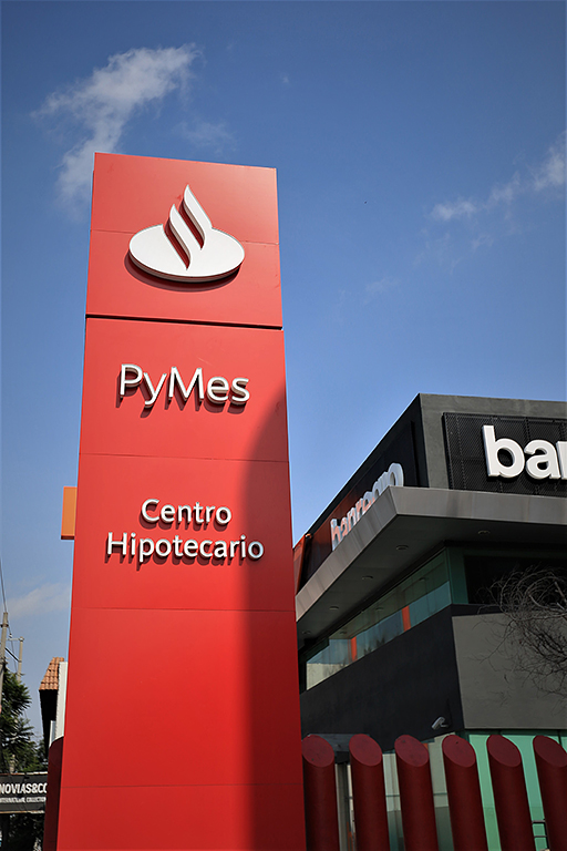 Elemento conformado por dos columnas metálicas ancladas a una cimentación, las cuales soportan un gabinete, el cual puede llevar termoformados, letras tipo block, sustrato flexible, etc.